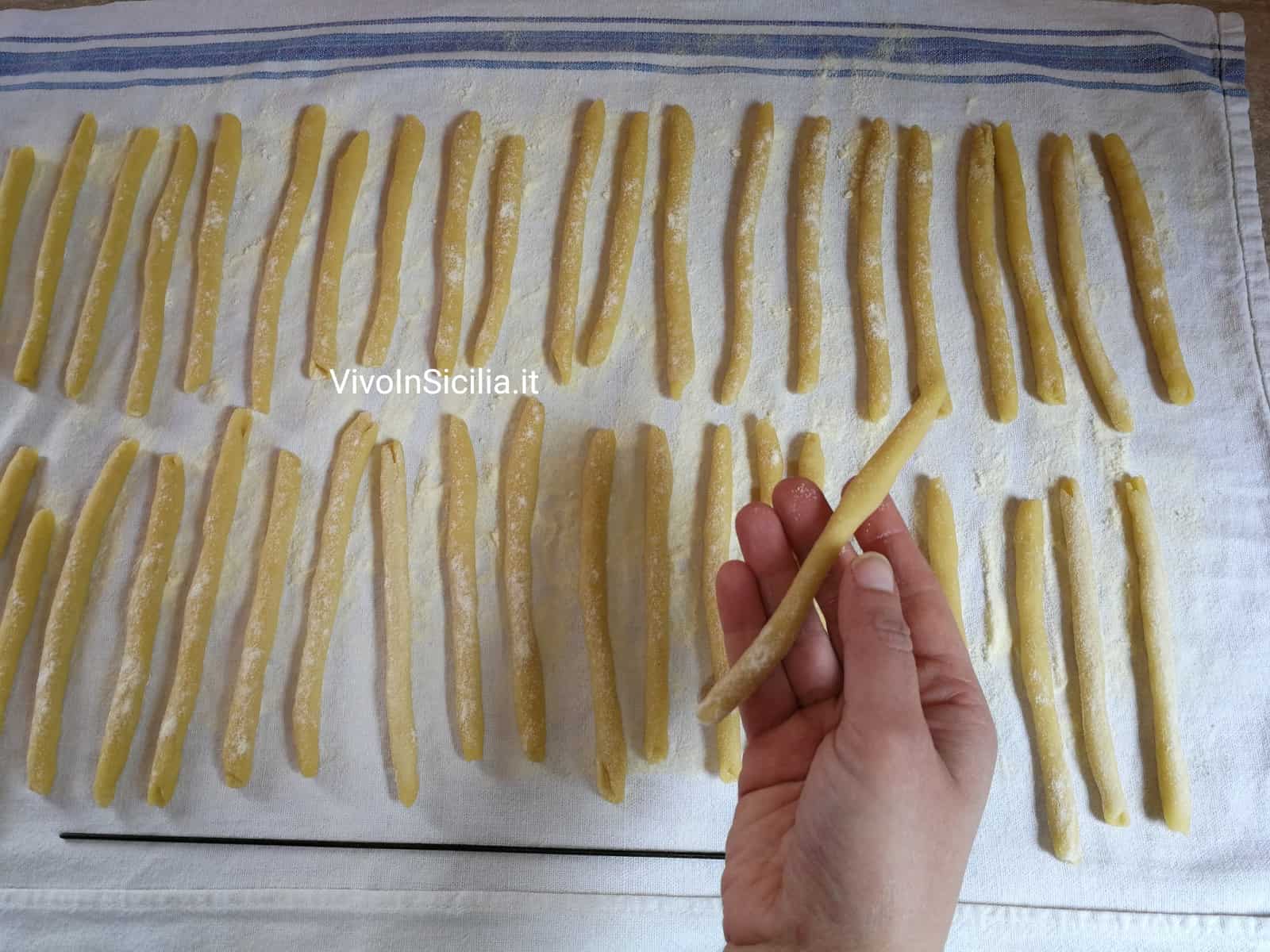 Anche chi non ha una grande manualità può cimentarsi nella preparazione di questa pasta fresca siciliana. E gli ingredienti che occorrono, secondo la ricetta più antica che stiamo per vedere, sono solo due: la farina di semola di grano duro rimacinata e un po’ di acqua tiepida.